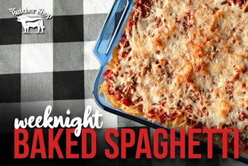 Baked spaghetti is simple enough for weeknights, but the cheesy, bubbling top makes it feel like a special occasion. At The Butcher Shop, our 100% natural, locally sourced meats and seafood elevate every meal. We also carry farm-fresh produce, freshly baked loaves of bread, and high-quality pantry ingredients – all at prices that won’t break your budget. Stop by today or call ahead to pre-order your ingredients.